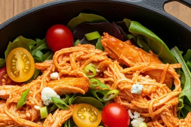 Indulge in a hearty bowl of buffalo chicken mac and cheese with vegetables that combines creamy cheese, spicy buffalo sauce,…