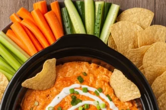 Creamy Crockpot Buffalo Chicken Dip with Vegetables