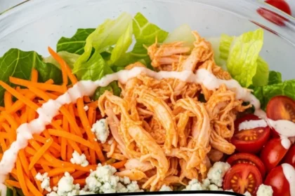 This buffalo chicken salad is packed with nutrients. The chicken provides a great source of lean protein, essential for muscle repair and overall health. The fresh vegetables add fiber, vitamins, and minerals, making this dish not only filling but also nutritious.