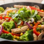 Quick and colorful, this stir-fry uses canned chicken, mixed frozen vegetables, and soy sauce. Serve over brown rice or whole grain noodles for a complete dish.
