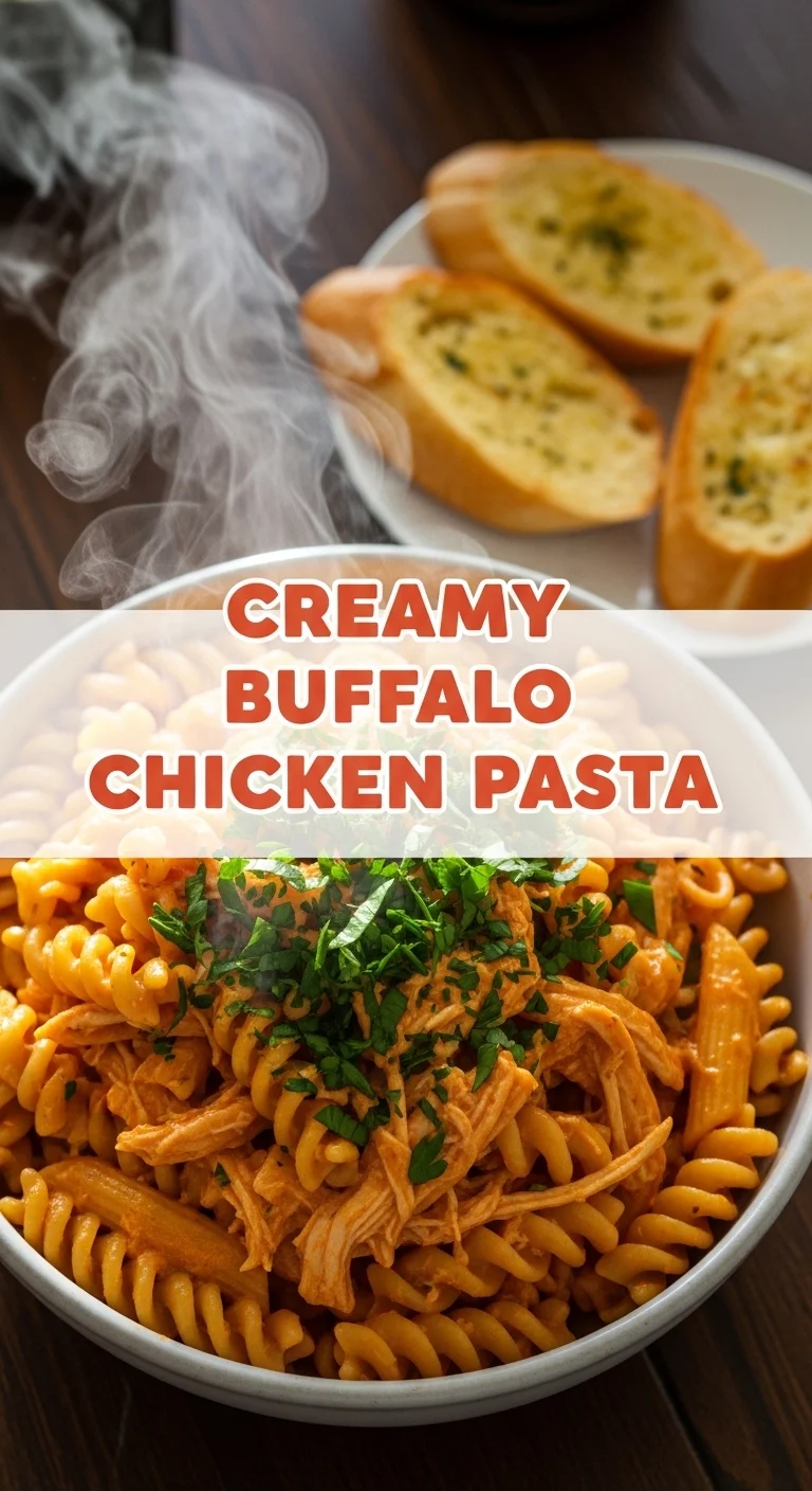 Creamy buffalo chicken pasta is delicious on its own, but you can elevate the meal by serving it with garlic bread or a fresh side salad. A simple green salad with a tangy vinaigrette pairs well, balancing the richness of the pasta. For an extra kick, consider serving it alongside some celery sticks and blue cheese dressing, reminiscent of classic buffalo chicken appetizers.